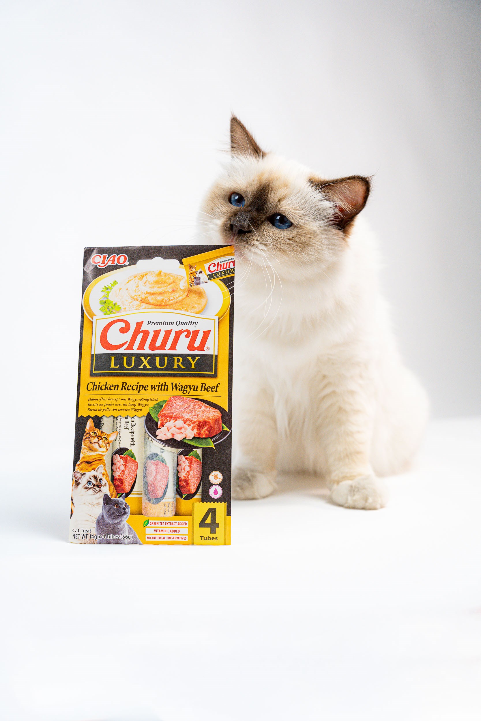 Churu Luxury est le segment haut de gamme de la gamme Churu d'Inaba et est synonyme de raffinement, de qualité et d'exclusivité. Ces snacks liquides de luxe pour chats se distinguent par des ingrédients soigneusement sélectionnés, des combinaisons de saveurs raffinées et une texture extra-crémeuse qui satisfait les chats les plus exigeants.