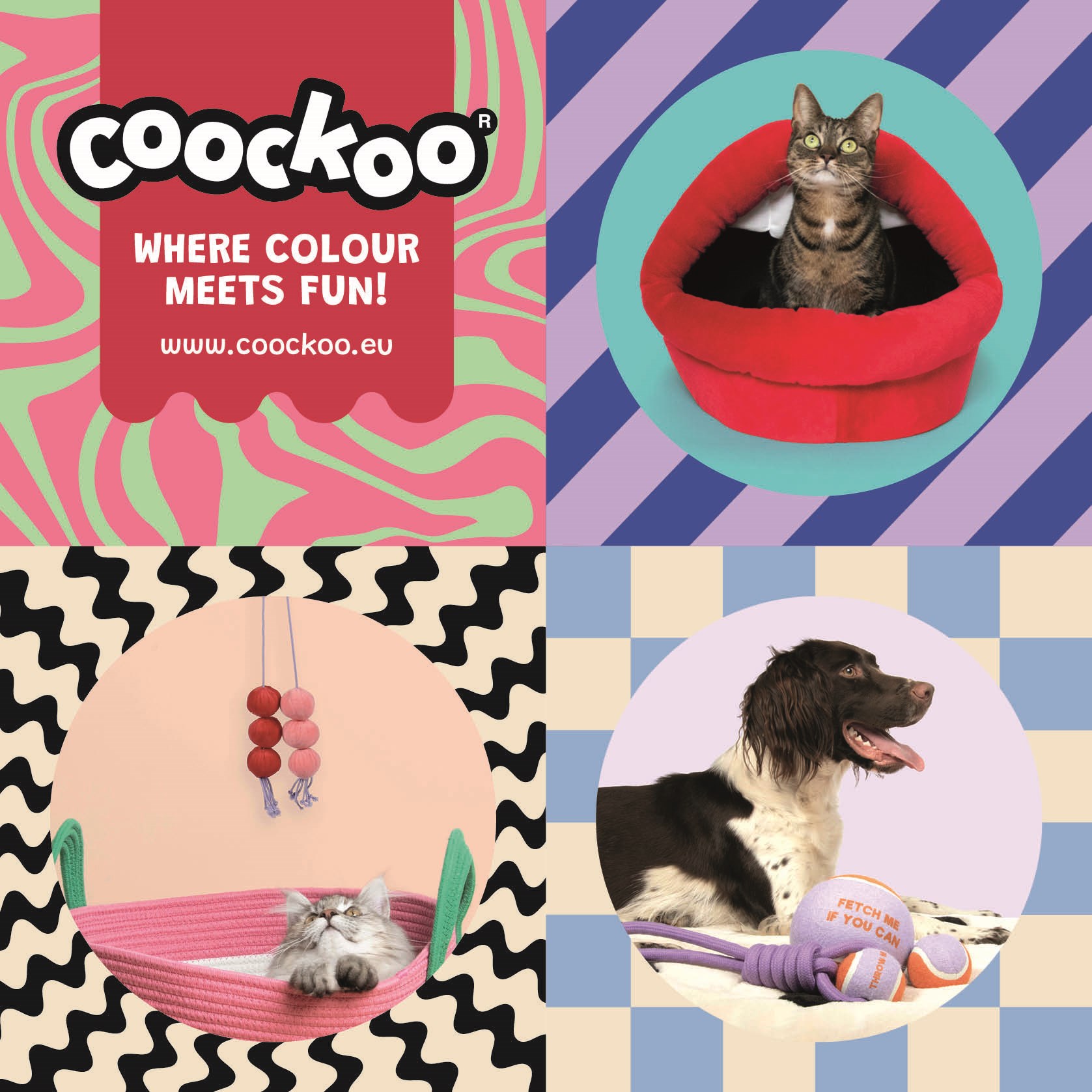 Rencontrez Coockoo - La marque ultime pour les chiens, les chats et leurs propriétaires ! Chez Coockoo, le plaisir est au centre de nos préoccupations, et notre objectif est d'apporter plus de joie dans votre vie et celle de votre compagnon à fourrure grâce à nos produits ! Nous pensons que les animaux de compagnie méritent un monde plein d'amusement et de moments ludiques sans fin. Après tout, la vie devrait toujours être colorée et agréable !