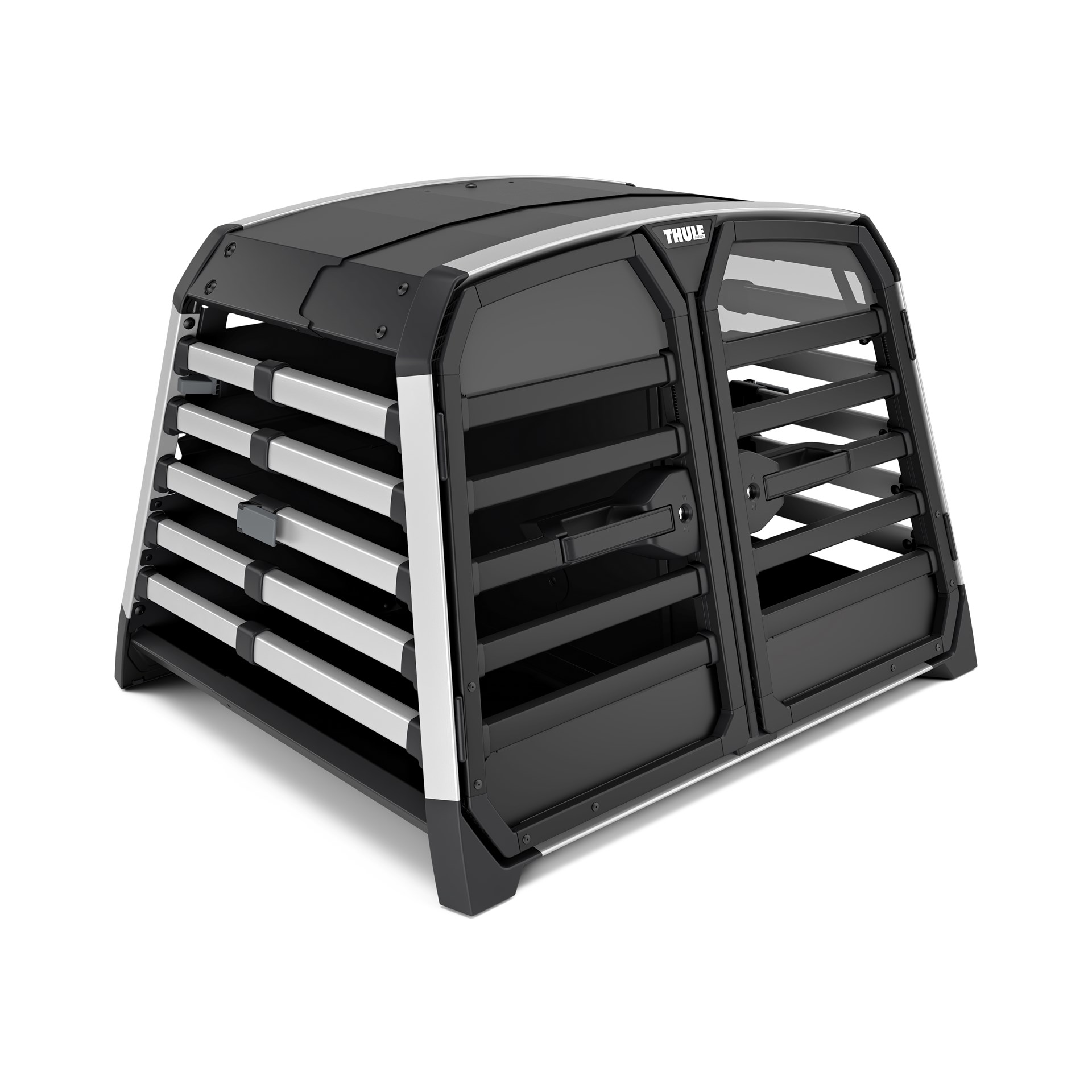 La cage double pour chien Thule Allax est le choix idéal pour des trajets en voiture sûrs et confortables avec vos amis à quatre pattes. Conçue pour la flexibilité, elle peut être utilisée pour deux chiens ou convertie en une cage spacieuse pour un chien plus grand en retirant la cloison. La cloison ajustable peut également être inclinée pour créer plus d'espace d'un côté, ce qui la rend idéale pour les chiens de tailles différentes. Testée de manière approfondie dans notre propre centre d'essai Thule et certifiée par TÜV SÜD, elle dispose d'une zone de déformation innovante pour une protection supérieure. La porte amortie par gaz s'ouvre et se ferme en douceur, et la serrure intégrée ajoute une sécurité supplémentaire.