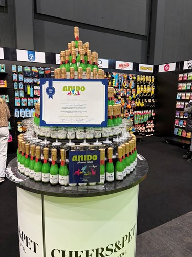 De Cheers & Pet Champagne is een gepasteuriseerde aanvullende voeding die alle voordelen van geitenkefir biedt. Het kan op verschillende manieren gebruikt worden: als smaakmaker (gemengd met brokjes), als tussendoortje, als beloning en als hydraterend middel. Het is geschikt voor honden en katten van alle rassen en leeftijden. Deze innovatie is niet alleen een bron van hydratatie, maar herstelt ook de darmflora, bevordert de spijsvertering en versterkt het immuunsysteem. Het product werd uitgeroepen tot winnaar van de New@ANIDO-award in de categorie ‘Voeding’.