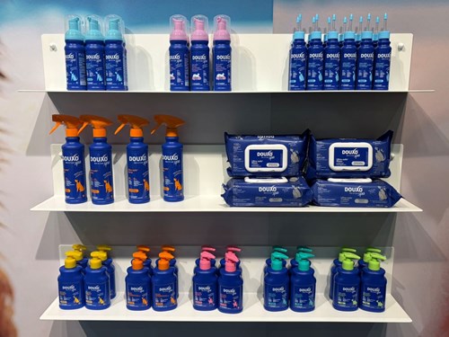 De huid van honden en katten is net zo gevoelig als die van een baby. Daarom introduceerde deze exposant nu de huid- en vachtverzorgingslijn DOUXO® Spa. Het betreft milde en ultraveilige producten die de huid van de viervoeters beschermen, onaangename geurtjes verwijderen en de gezondheid bevorderen. Ze zijn voor 97% vervaardigd met ingrediënten van natuurlijke oorsprong en bevatten geen sulfaten, parabenen, kleurstoffen, nano-deeltjes, ftalaten en siliconen. Het aanbod bestaat uit 4 shampoo’s, 2 mousses zonder uitspoelen, een spray, een oorreiniger en multifunctionele doekjes.