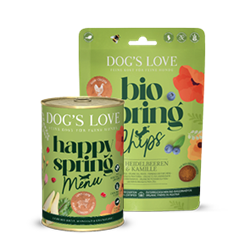In de eerste plaats introduceert DOG'S LOVE in maart de lijn Spring Specials voor honden. Hiermee brengt het merk verse, seizoensgebonden afwisseling in het voedings- en snackschap. Het lentemenu 'Lamsvlees met peer, snijbiet & granaatappel' overtuigt als uitgebalanceerd natvoeding, waarbij hoogwaardige grondstoffen worden gecombineerd met een bijzonder goede tolerantiegraad, ook voor gevoelige honden. Het assortiment wordt aangevuld met de biologische lentechips 'Biologische kip met biologische bosbessen & biologische kamille', een natuurlijke snack van 100% biologische kwaliteit die ideaal is als kleine beloning tussendoor.