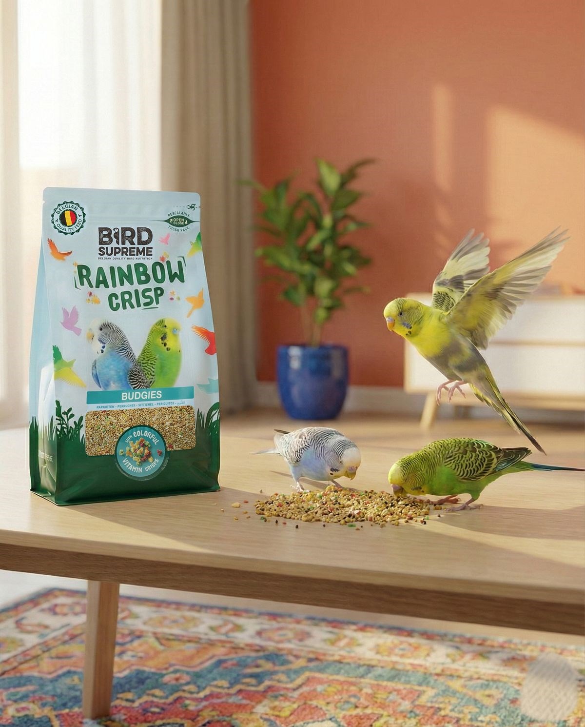Bird Supreme Rainbow Crisp is een premium mengeling, ontwikkeld met Belgische expertise en verrijkt met vitamine A, D en E. Deze actieve formule ondersteunt weerstand, vitaliteit en mooie, glanzende veren.